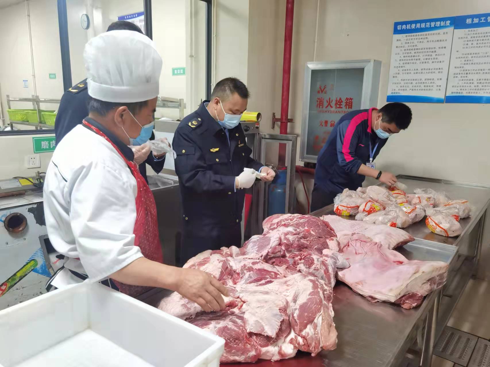 2022年3月,我校联合晋宁区市场监督管理局开展校园内食品安全检查,通过深入开展校园食品安全排查,使我校食品安全防控措施明显加强,防控能力得到明显提高,促使学校内部食堂管理和食品安全制度不断完善,管理工作能力和水平全面提升,师生的安全意识和防范能力不断增强,达到学生安心、家长放心、教职工满意的目的。