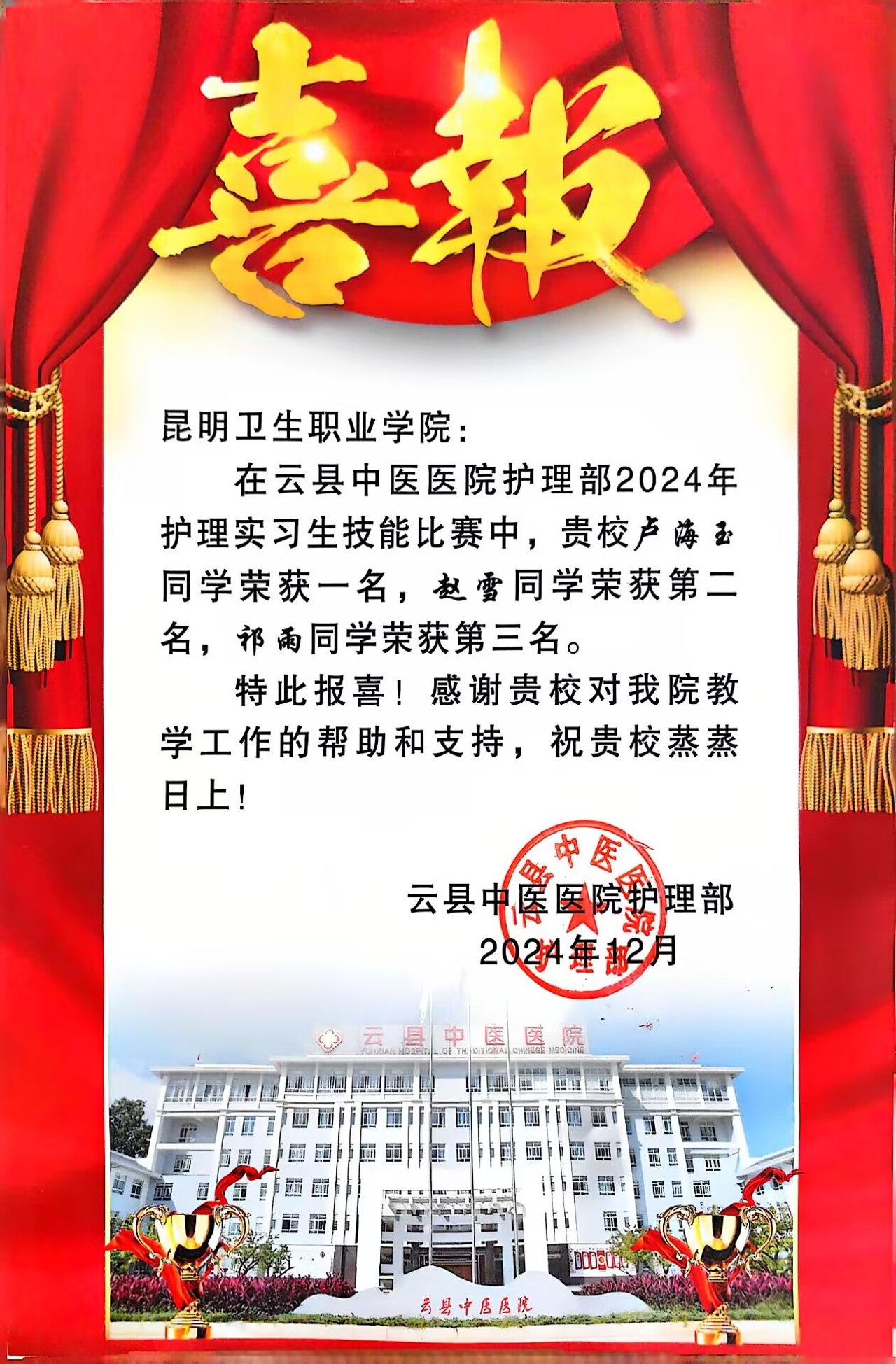 | 我院学子在非直属附属医院技能比赛中斩获佳绩|昆明卫生职业学院官网|云南医学类大专|云南骨伤科学校|云南民办高校