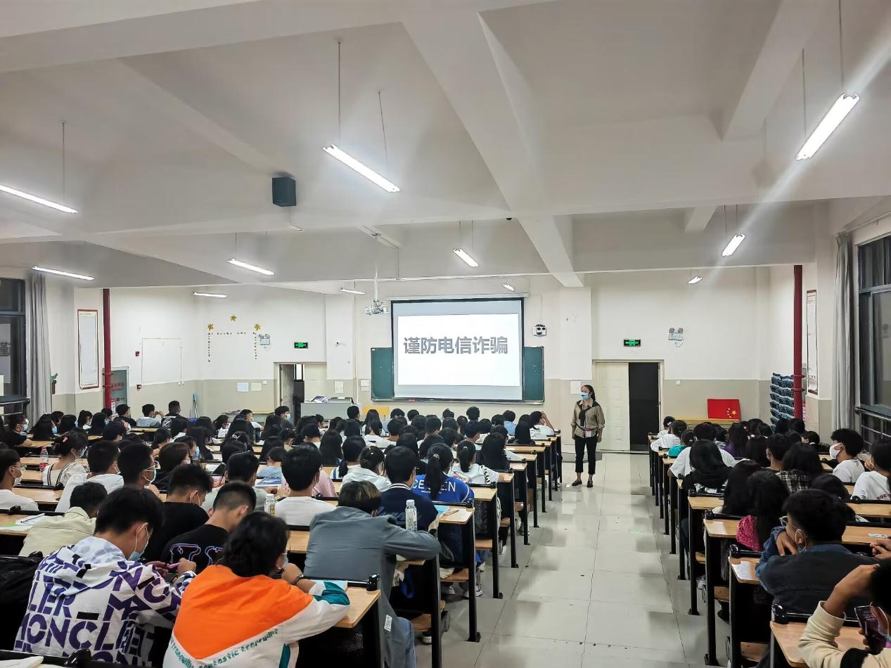 图5:辅导员敖宇蓉正在开展防电信网络诈骗宣讲,普及宣传反诈骗知识