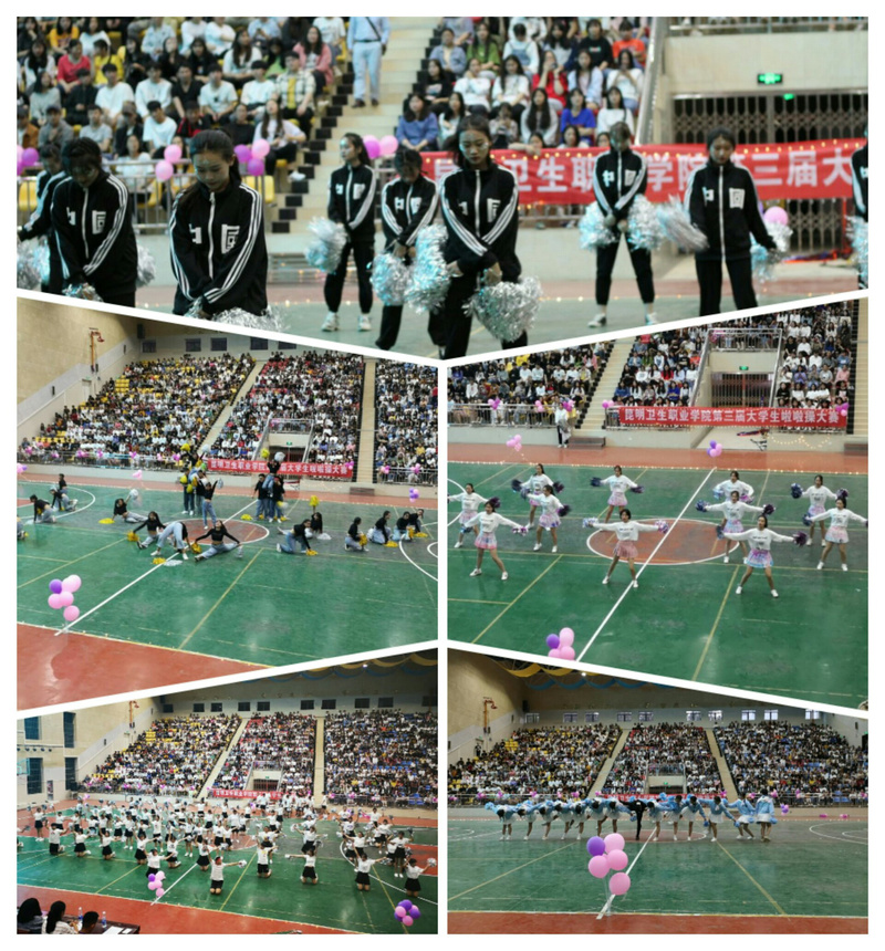 为了丰富校园文化,进一步推动学院校园文化建设,不断提高同学们的综合素质。于2019年4月25日我院大学生青年志愿者联合会在体育馆举办了昆明卫生职业学院第三届大学生啦啦操大赛。