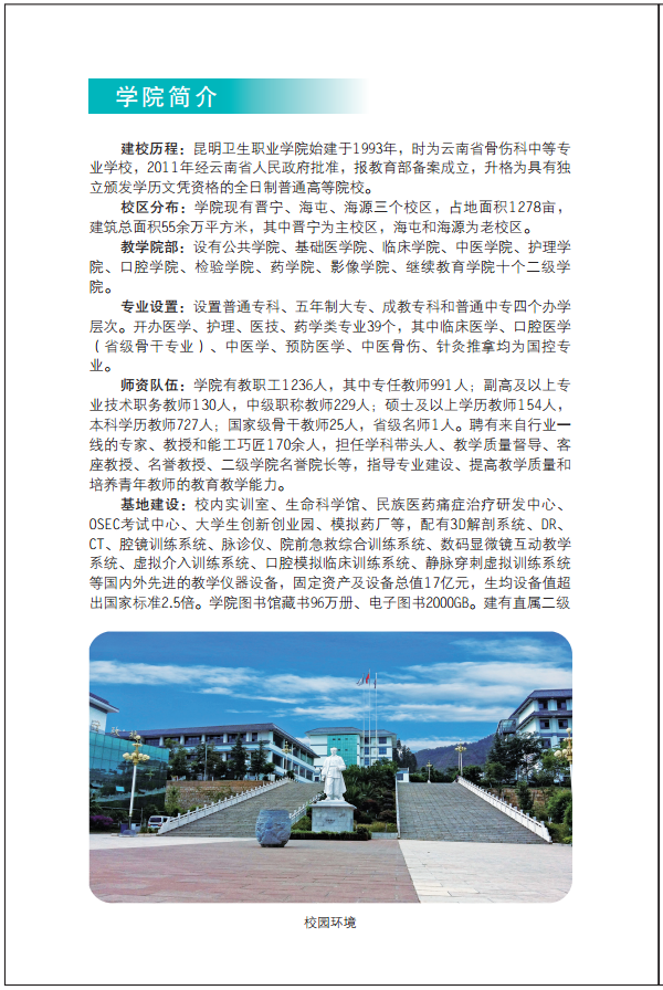 昆明卫生职业学院2019年秋季招生简章(五年制大专、普通中专)